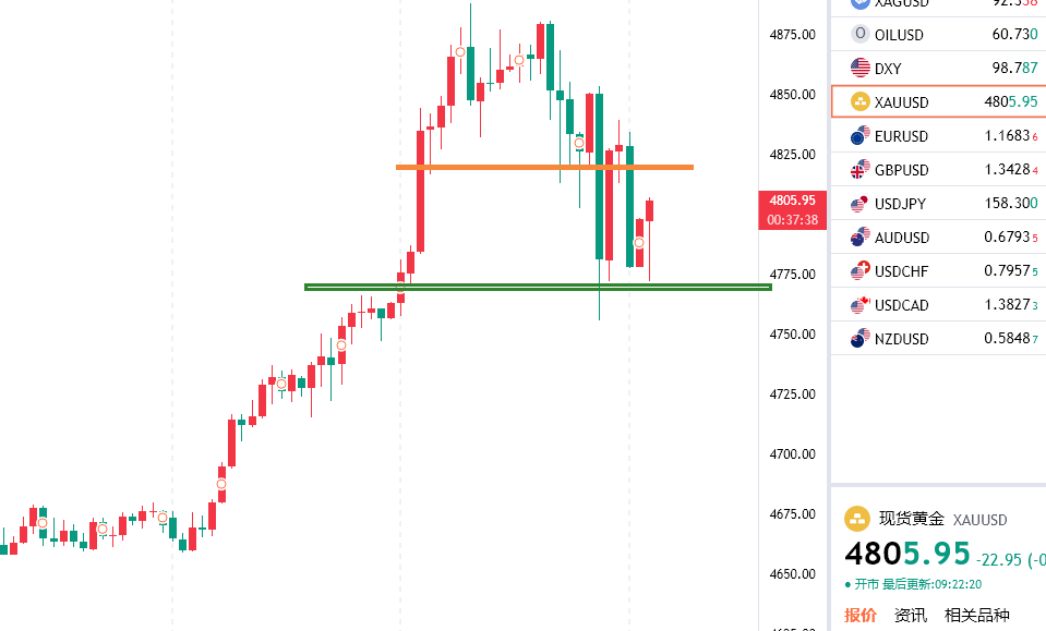 黄金回踩4766附近多,防守4755,目标看4790/4810上方,反抽初见4817附近空,防守4828,目标看4800/4780一线