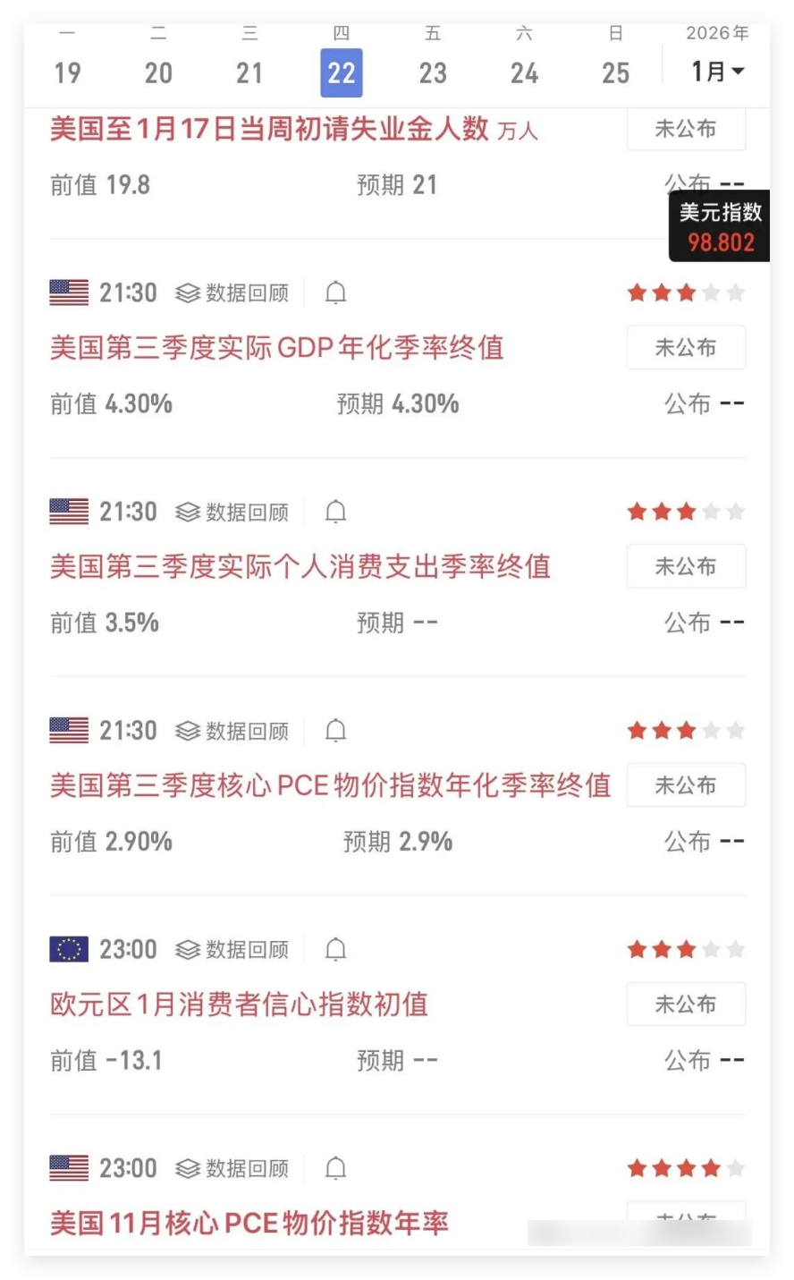 今天一系列数据公布,关注美国pce物价数据,GDP数据,个人支出数据和初请失业金等数据。