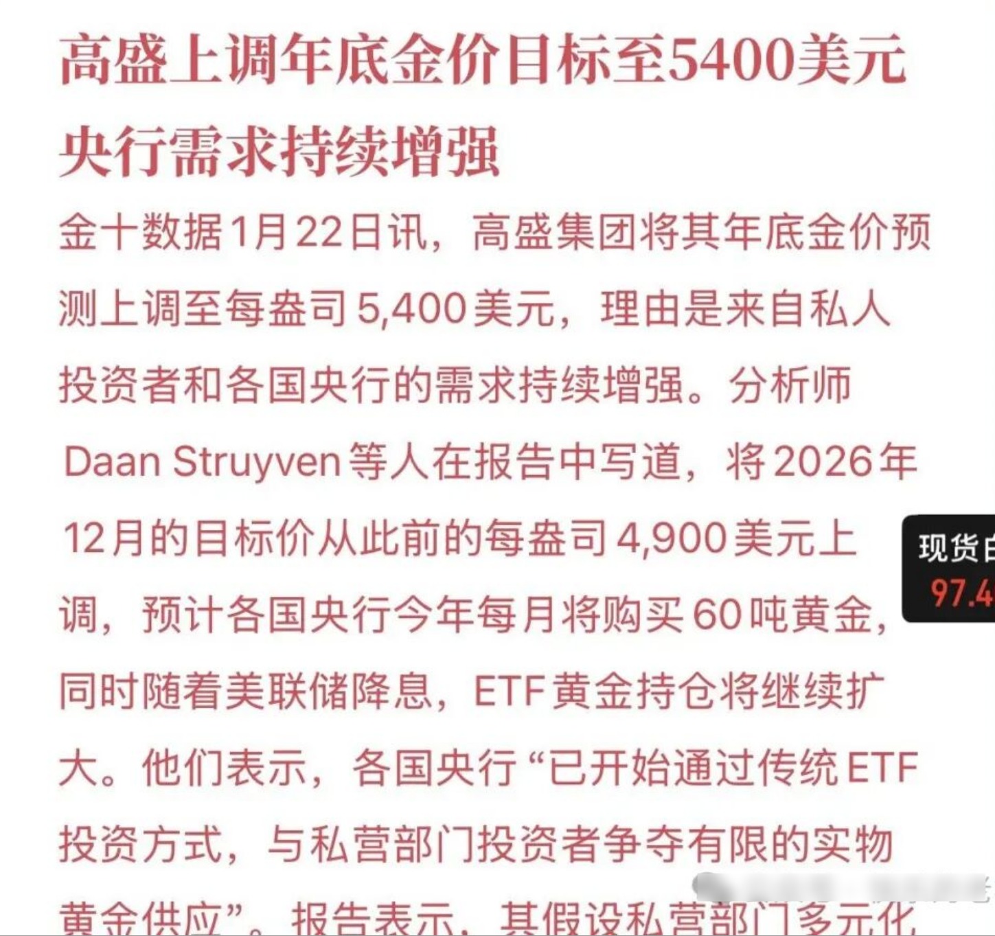 高盛紧急调整黄金目标至5400美元,不过我觉得保守了,我在今年年度报告中看涨5600美元(1250)--6200(1380-90)呢!