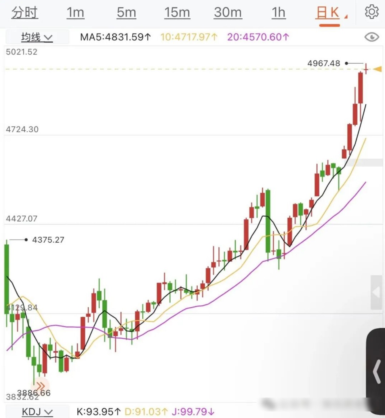 金融市场就这样,炒作的就是预期;未来是否真的发生某件事不重要,而重要的是当发出这样的信号的时候,金融市场就开始计价了。周三美盘,短暂的调整后,黄金迅速大涨突破历史新高,并站上4900美元(国内1102-3),直奔5000美元(国内1123-25区域);白银也大涨突破历史新高,直奔100美元(国内25.2-25.4)。